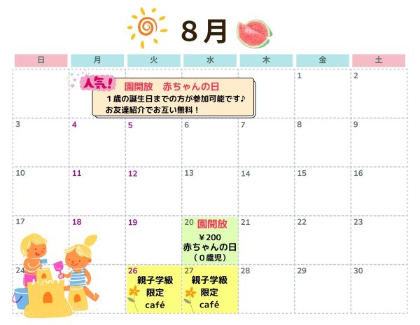 2025年07月01日(火)子育てサロン7~8月の子育てサロン